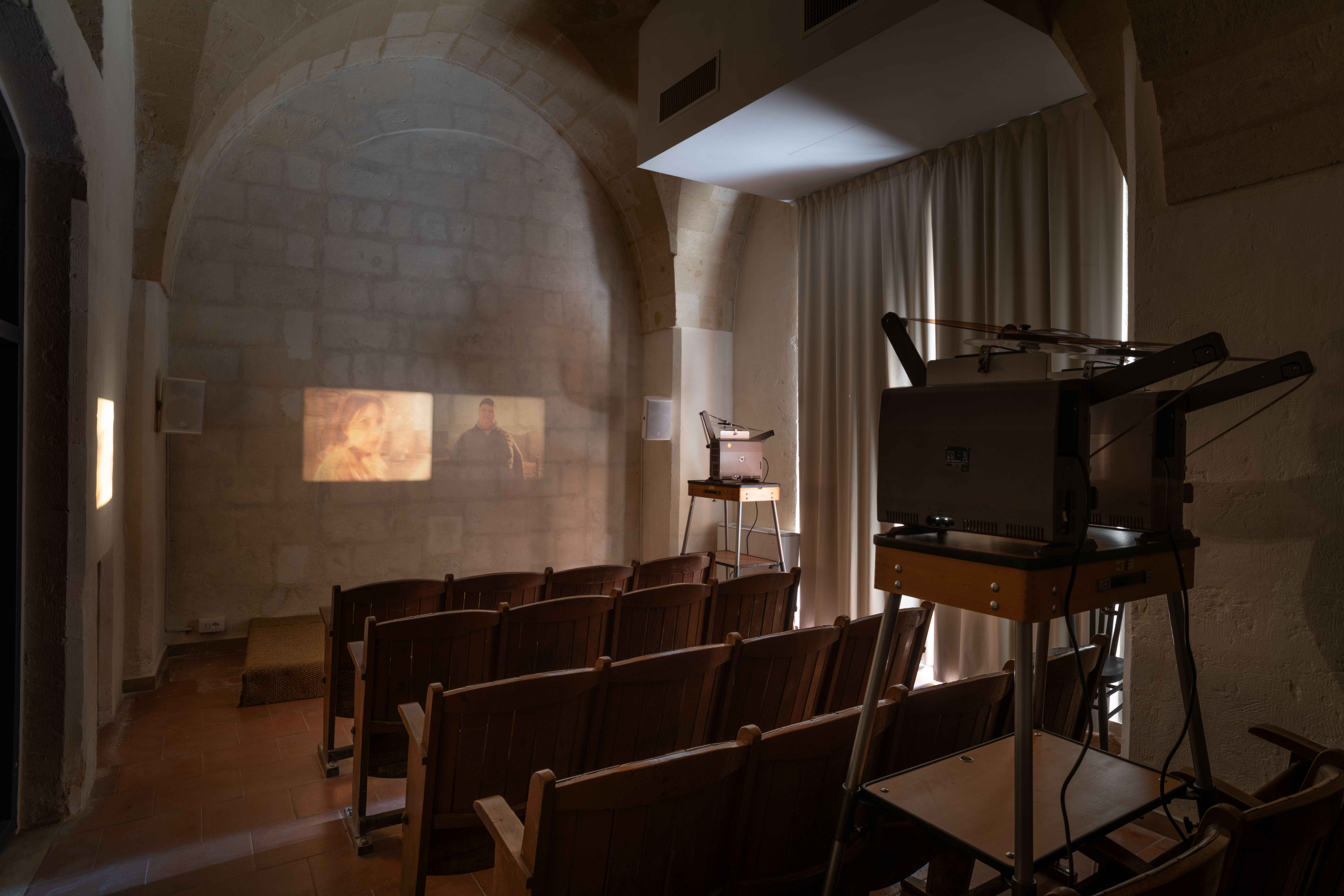 LA MOLLE MOLLE TERRA INSTALLATION, 2-4 16mm film projectors, colour, mute, loop, 2018.